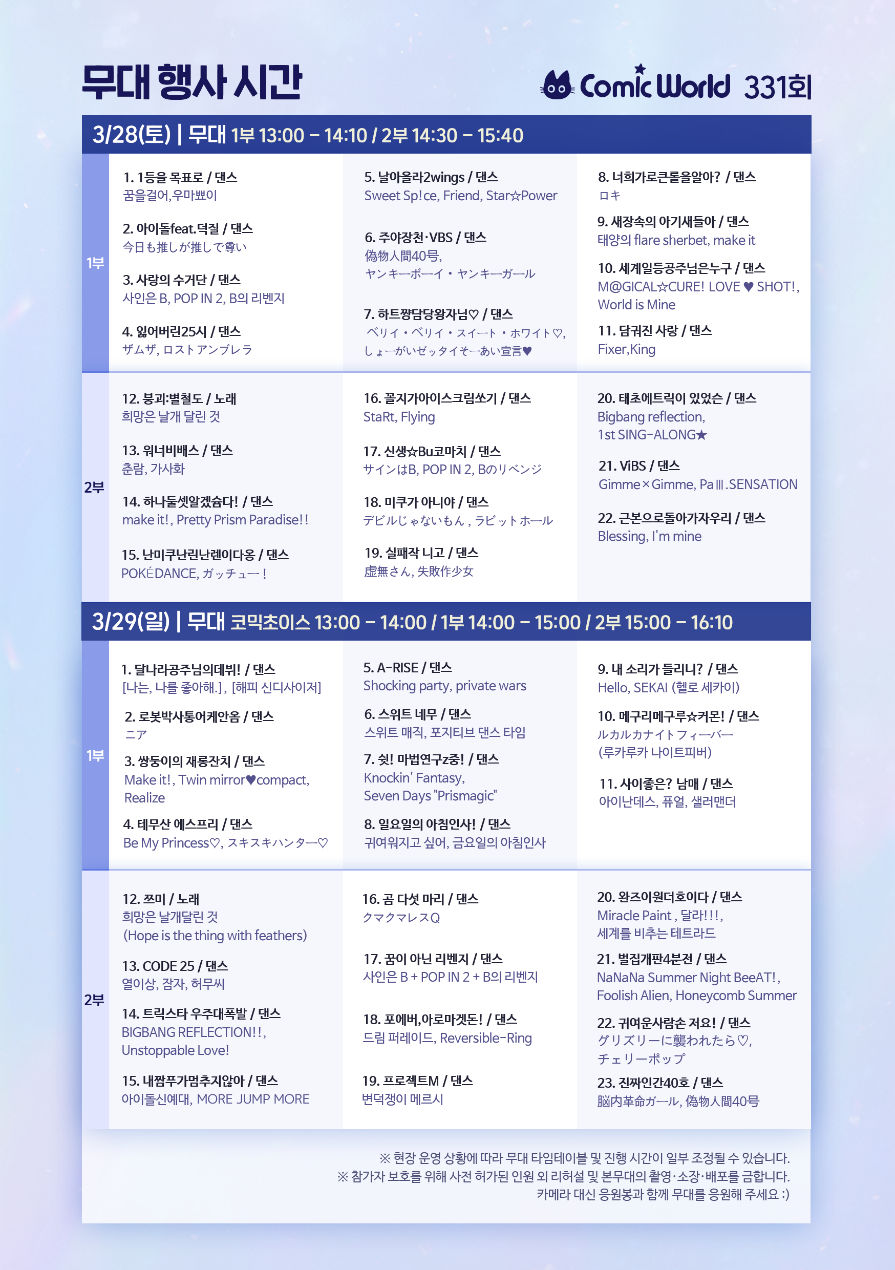 (무대 시작 시간은 현장 상황에 따라 변동될 수 있습니다.)