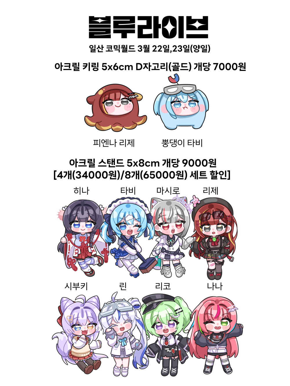 스텔라이브, 블루아카이브 부스이며 블루아카이브 굿즈는 수요조사 없이 추후에 추가되어 판매할 예정입니다!